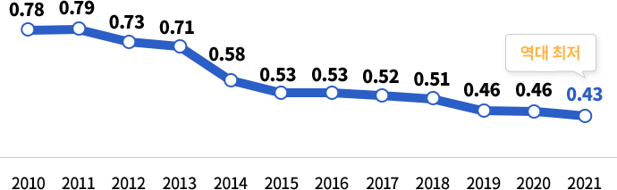 종합대책의 적극적인 이행 등으로 산재사고 사망자수와 사고사망만인율 모두 2021년 역대 최저 수준(2016년 969명 → 2021년 828명, 2016년 0.53 → 2021년 0.43)을 기록했습니다. 다만, 최근 평택항 등 국가시설에서 산재사고가 발생하는 등 비극을 완전히 멈춰 세우지는 못했습니다. 이에 대응하여 공공시설에 대한 점검과 함께 추락, 끼임 등 후진적인 산재사고 발생을 막기 위한 대책 수립도 추진하고 있습니다.
