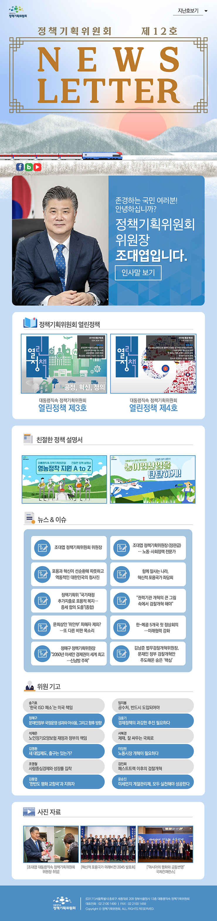 이 웹사이트는 제19대 대통령 임기 종료에 따라 대통령기록관이 「대통령기록물 관리에 관한 법률」에 의해 이관받아 서비스하는 대통령기록물입니다. 자료의 열람만 가능하며 수정 · 추가 · 삭제는 불가능합니다.
