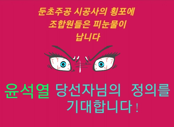 당선됨을 축하드립니다. 공정과 정의가 살아있는 나라 ! 완전 좋아요 둔촌재건축 조합원 입니다. 지금 둔촌재건축 사업장엔 시공사의 조합원 망치기에 피멍들고 있습니다.