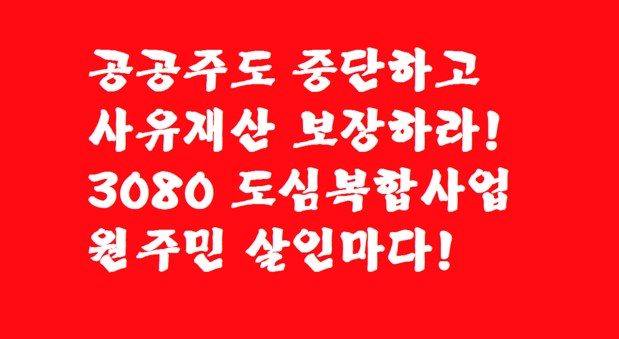 3080 도심복합사업 2.4대책 공공주도개발반대 사유재산권 거주권 생존권 보장하라 당선인님 인수워원장님 그리고 위원님들 투기꾼 배불린다고 집 내놓으라하면 어쩌시겠습니까?