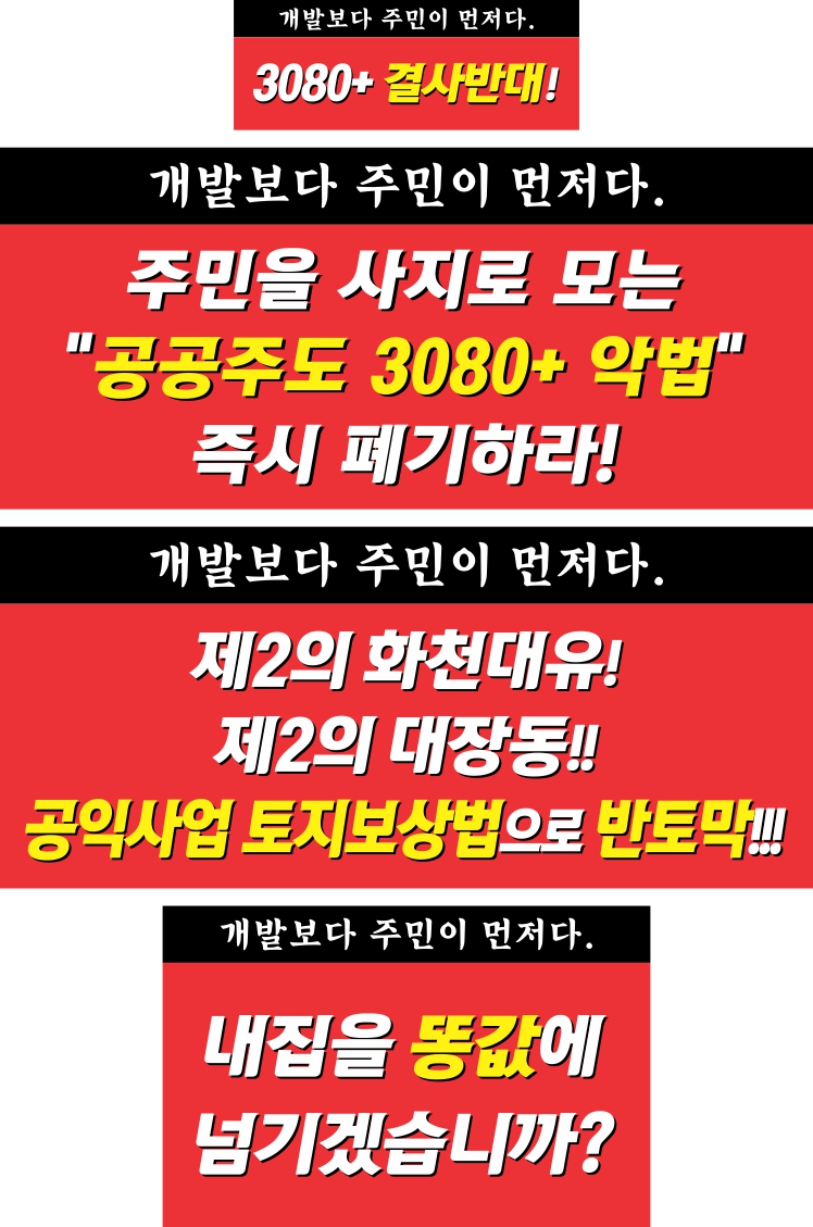 3080 도심복합사업 2.4대책 공공주도개발반대 사유재산권 거주권 생존권 보장하라 당선인님 인수워원장님 그리고 위원님들 투기꾼 배불린다고 집 내놓으라하면 어쩌시겠습니까?