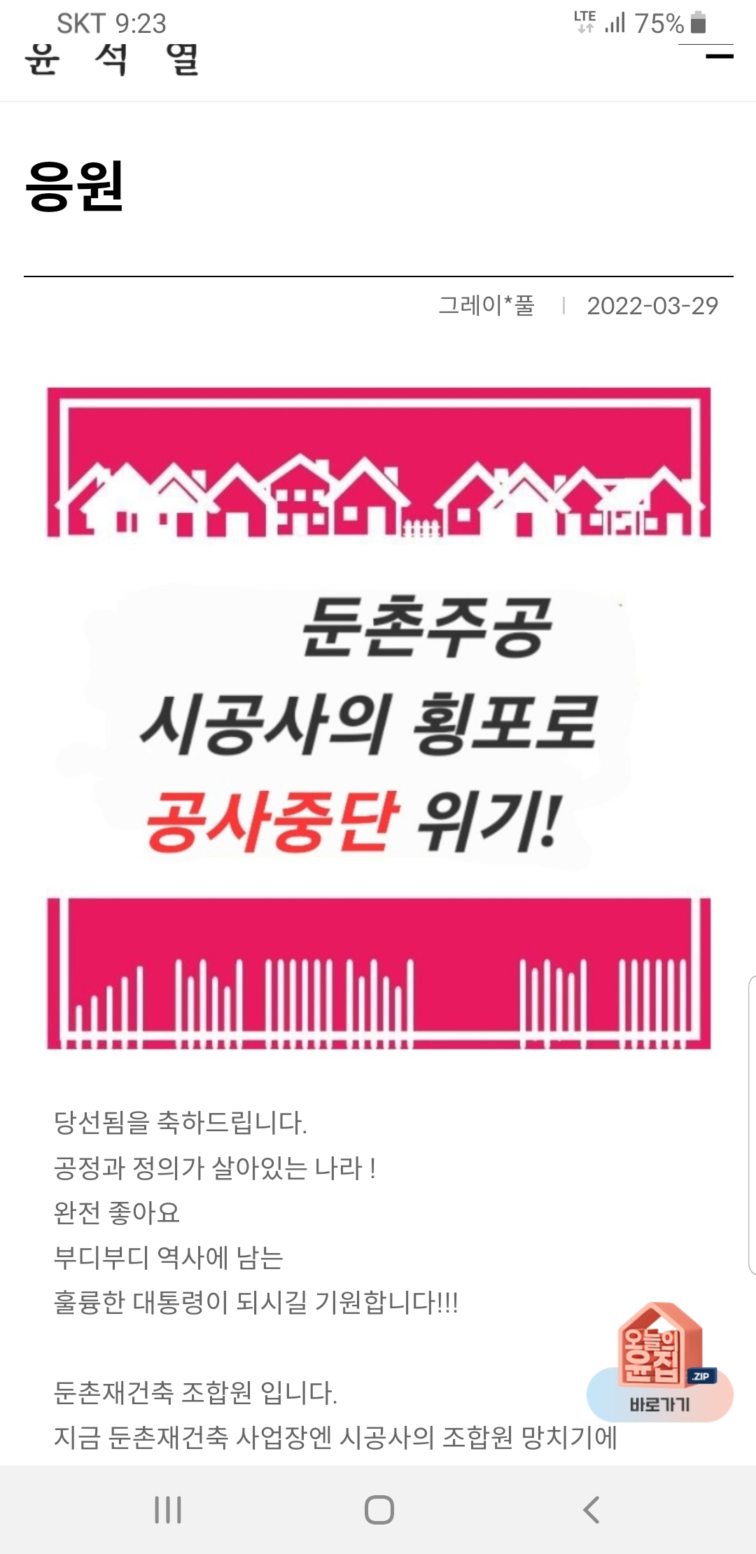 제발 인수위에서 둔촌주공 문제를 아젠다로 채택해서 해결해주시길 간곡히 부탁합니다.