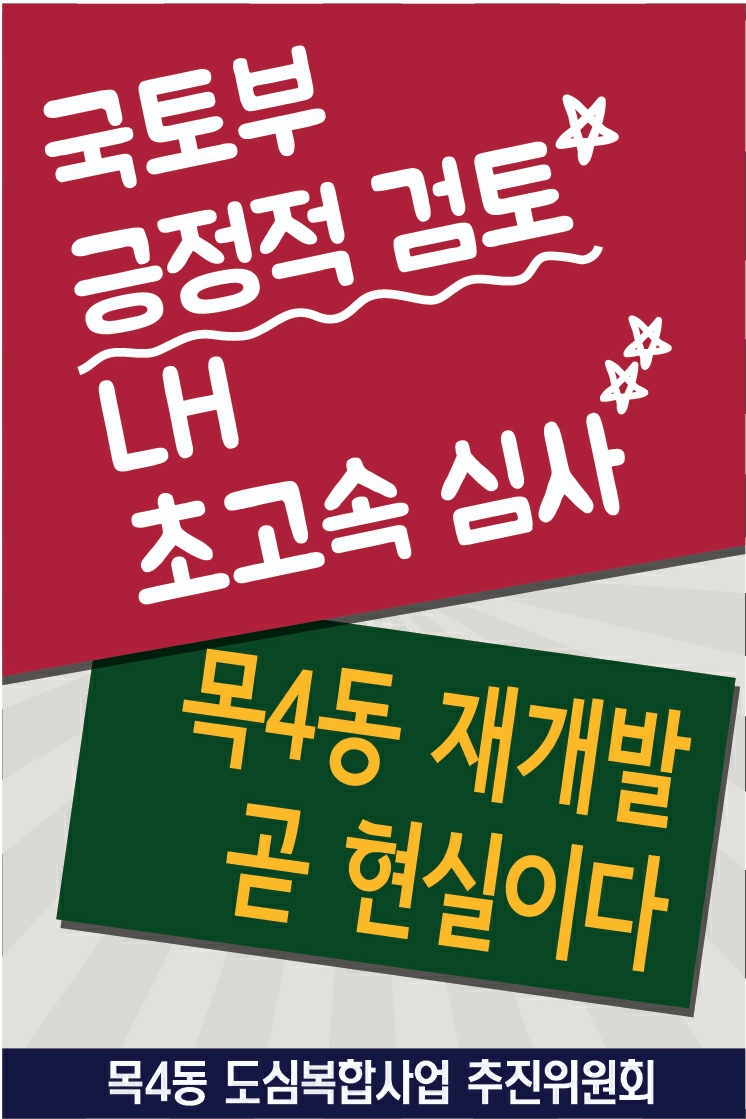 낙후된 양천구 목4동의 통합과 미래발전을 위해, "대규모 도심 복합사업" 지정 부탁드립니다. 대한민국의 통합과 미래발전을 위해, 당선되신 것을 진심으로 축하드립니다.
