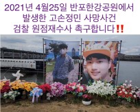 2021년4월25일 반포한강시민공원에서 고손정민(대학생) 사건 서초경찰이 덮은 의혹많은 사망사건입니다. 제발 검찰원점 재수사 할수 있게 해주세요.너무억울해서 너무안타깝고 분하고 일면식도 없는 제가 이사건을 접하고 너무도 의혹이 많은 사건❗❗서초경찰 초동수사실패 경찰의 부실수사 ! 거짓방송 그알!! 국민청원52만명 국회청원10만명 무시한 문정권!! 현재도 진행중인 국민청원...제발 국민의 소리에 관심갖고 귀 기울여 억울함이 없게 윤석열대통령님이 힘을 실어 분명 재수사 할수있게 도와주세요.간곡히 간절한 마음으로 글 남깁니다.