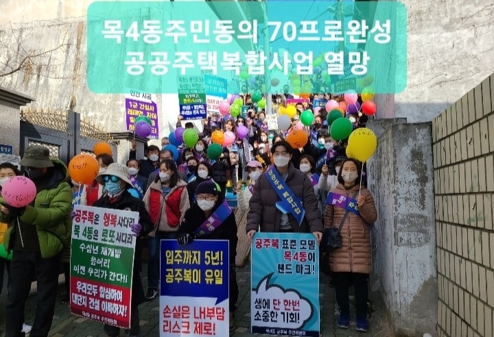 도심공공주택 복합사업, 그 안에 목4동의 지난날 재개발의 아픈 역사가 베여 있고 오늘날 삶의 누추함과 마음의 초라함이 서려있으며 자라나는 우리 아이들의 소망이 담겨 있습니다. 그래서 이제는 주민 한 사람 한 사람이 힘을 내어 가두행진을 합니다.