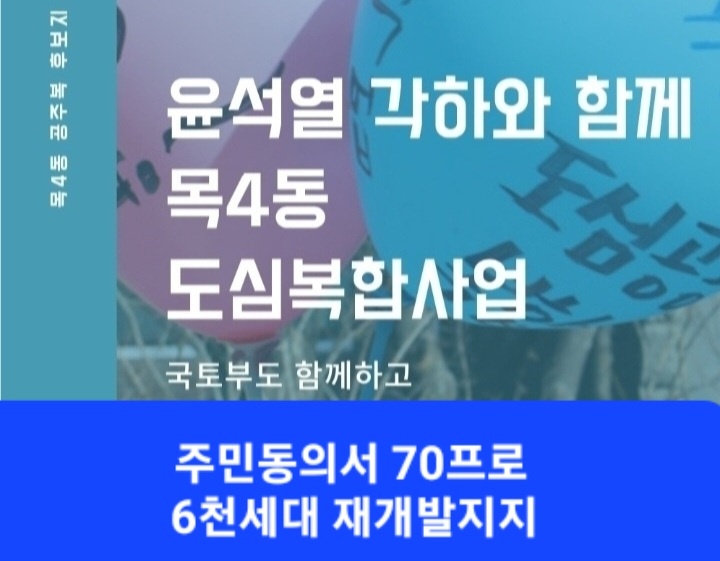 당선을 진심으로 축하드립니다 양천구목4동 주민 들은 모두 한 마음으로 도심공공주택복합사업 후보지지정 을 간절하게 원합니다 부디 목4동을 살펴봐 주세요